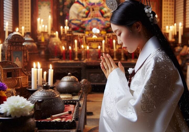 제사는 조상님에게 예를 갖추고 허락을 구하는 의식으로 이 꿈은 가족이나 조상과의 유대가 강화되고, 과거의 지혜를 배우는 기회가 올 것을 예고합니다.